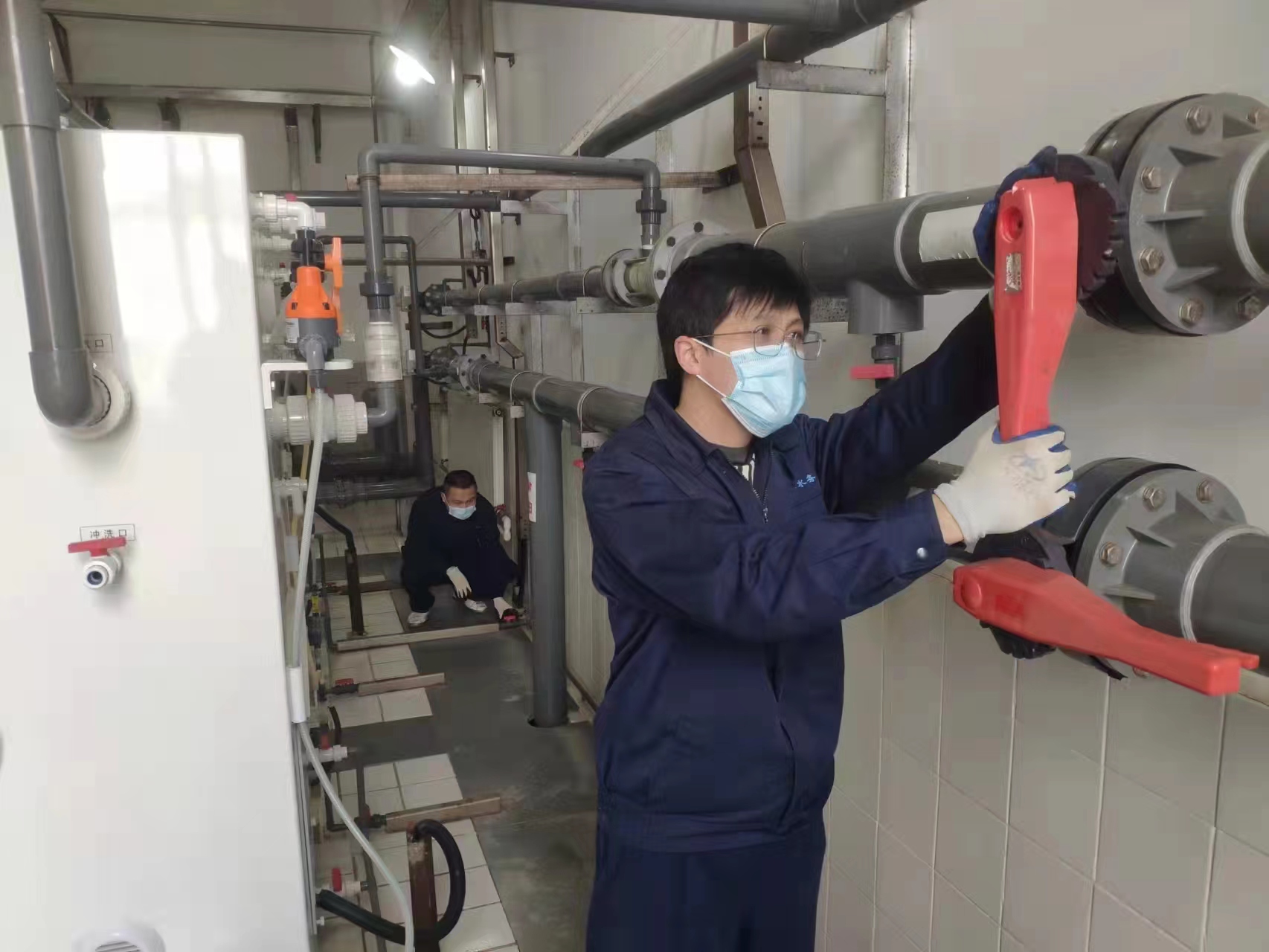 身兼數(shù)職勇?lián)敗?/strong>水務(wù)集團第六凈水廠負責市區(qū)60%的生活生產(chǎn)用水。水廠封閉后,在廠內(nèi)的七、八個員工維持運轉(zhuǎn),難度可想而知。面對困難,第六凈水廠黨支部沒有退縮,迎難而上,在崗黨員干部關(guān)鍵時刻站得出來,勇于擔責,生產(chǎn)業(yè)務(wù)骨干沖鋒在前、做出表率。雖然每個人的工作時間延長了,但工作質(zhì)量絕不打折扣。在全力做好各自分內(nèi)工作的同時,兩名廠長身兼廚師和保潔員,凈化工身兼化驗員,運轉(zhuǎn)工變身為廚師,黨員、業(yè)務(wù)骨干兼職勤雜工,在大家的共同努力下,水廠運行安全平穩(wěn)有序。