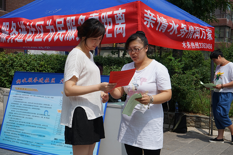下半年,水務(wù)集團(tuán)“供水服務(wù)進(jìn)社區(qū)、為民服務(wù)零距離”活動(dòng)集中進(jìn)社區(qū)活動(dòng),還將再分2次走進(jìn)轄區(qū)其他16個(gè)成型小區(qū)及社區(qū)街道,通過(guò)開(kāi)設(shè)咨詢臺(tái)現(xiàn)場(chǎng)受理用戶訴求;發(fā)放意見(jiàn)書向用戶征求供水服務(wù)意見(jiàn)建議;張貼發(fā)放供水常識(shí)宣傳單等多種形式,開(kāi)展便民服務(wù)活動(dòng),同時(shí),開(kāi)展對(duì)活動(dòng)區(qū)域用戶有水量異議的,可實(shí)施水表校驗(yàn)和戶內(nèi)暗漏協(xié)助檢查服務(wù)及做好便民維修和代收水費(fèi)等其他服務(wù)。