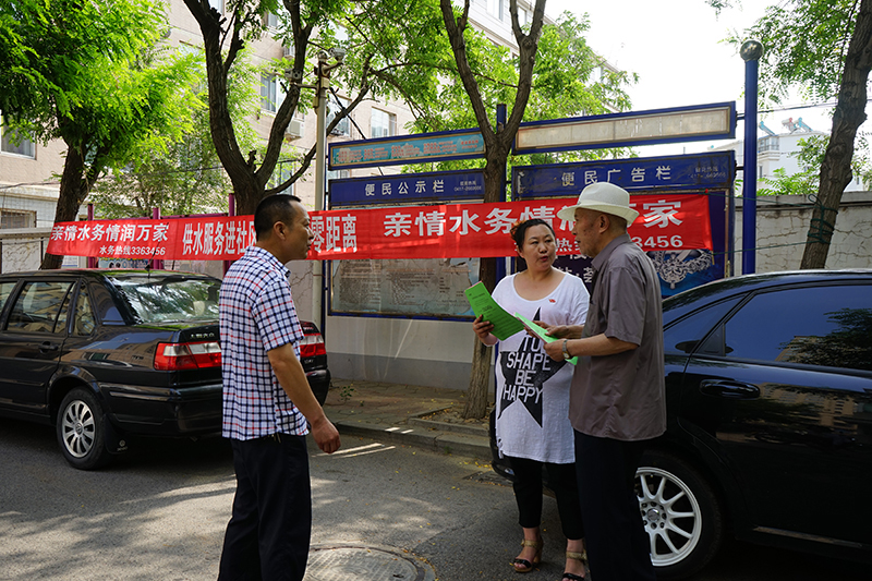 當(dāng)天,集團(tuán)公司領(lǐng)導(dǎo)班子帶領(lǐng)營(yíng)業(yè)、客服、計(jì)量、水質(zhì)、管網(wǎng)、維修等10多個(gè)部門的黨員干部職工近百人,走進(jìn)主城區(qū)格林新居、天宇宏府、龍灣、通惠苑、國(guó)寶壹號(hào)、南湖陽(yáng)光新城6個(gè)小區(qū)和老邊山水文范小區(qū)、蓋州永安辰州秀景小區(qū),深入用戶,集中開(kāi)展“供水服務(wù)進(jìn)社區(qū)、為民服務(wù)零距離”活動(dòng)?;顒?dòng)中,水務(wù)集團(tuán)在8個(gè)小區(qū)現(xiàn)場(chǎng)搭建服務(wù)展臺(tái)、遮陽(yáng)棚及用水常識(shí)服務(wù)展板,為拓寬便民服務(wù)綠色通道,每個(gè)小區(qū)還設(shè)置了公示欄,張貼“抄收員”和“水務(wù)熱線”等信息,方便日常用戶聯(lián)系;黨員干部職工現(xiàn)場(chǎng)發(fā)放用水服務(wù)常識(shí)宣傳單1087份,發(fā)放征求意見(jiàn)函151份,現(xiàn)場(chǎng)解答用戶咨詢各類用水問(wèn)題181個(gè),上門解決用戶更名、水龍頭堵塞等用水難題20件次,上門為老年用戶代交水費(fèi)2戶。