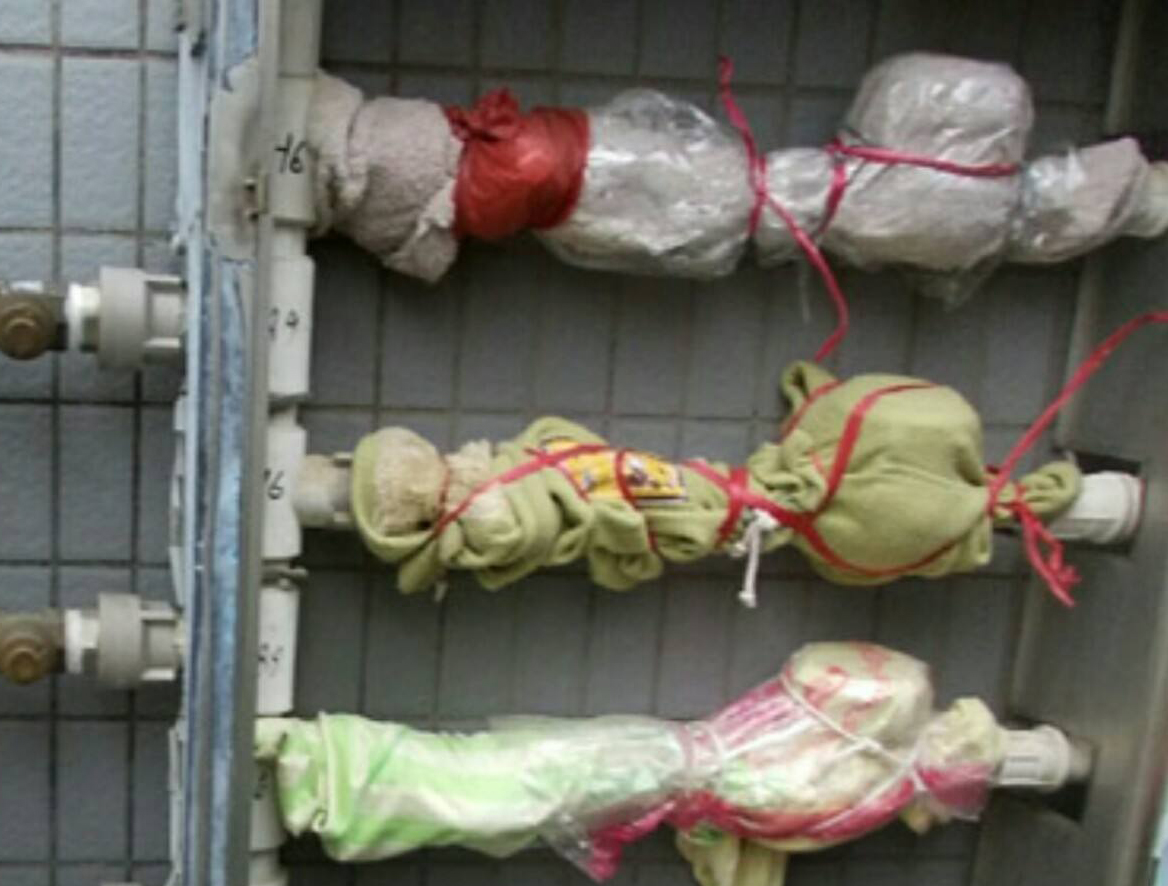 對于安裝在室外管道井內(nèi)的水表,可用保暖物品(如廢舊衣物、棉花、棉布、麻織物、草帶、草繩等物品)將水表及閥門裹好,裹護(hù)物要保持干燥,不要有水沾濕,并要裹得嚴(yán)實(shí)緊湊,然后再用塑料袋(膜)包住。